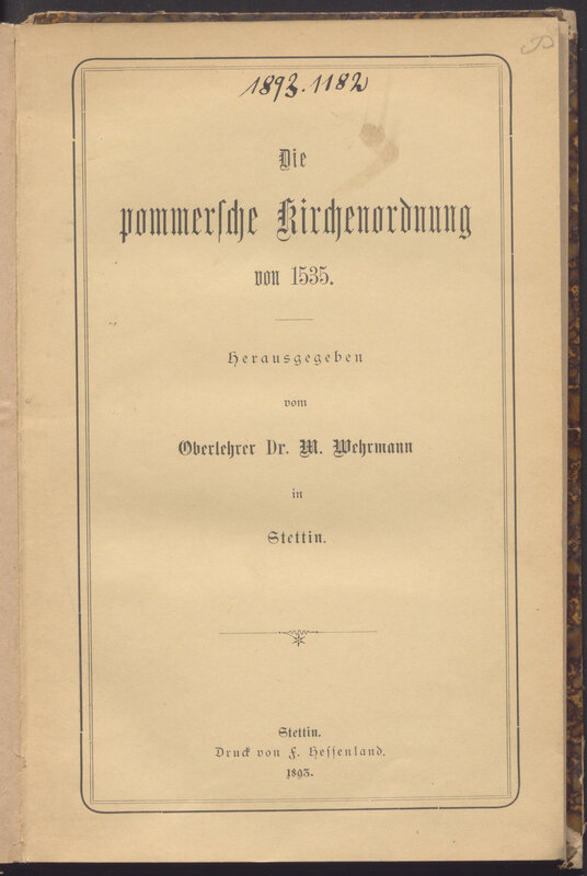 Die pommersche Kirchenordnung von 1535 - strona tytułowa