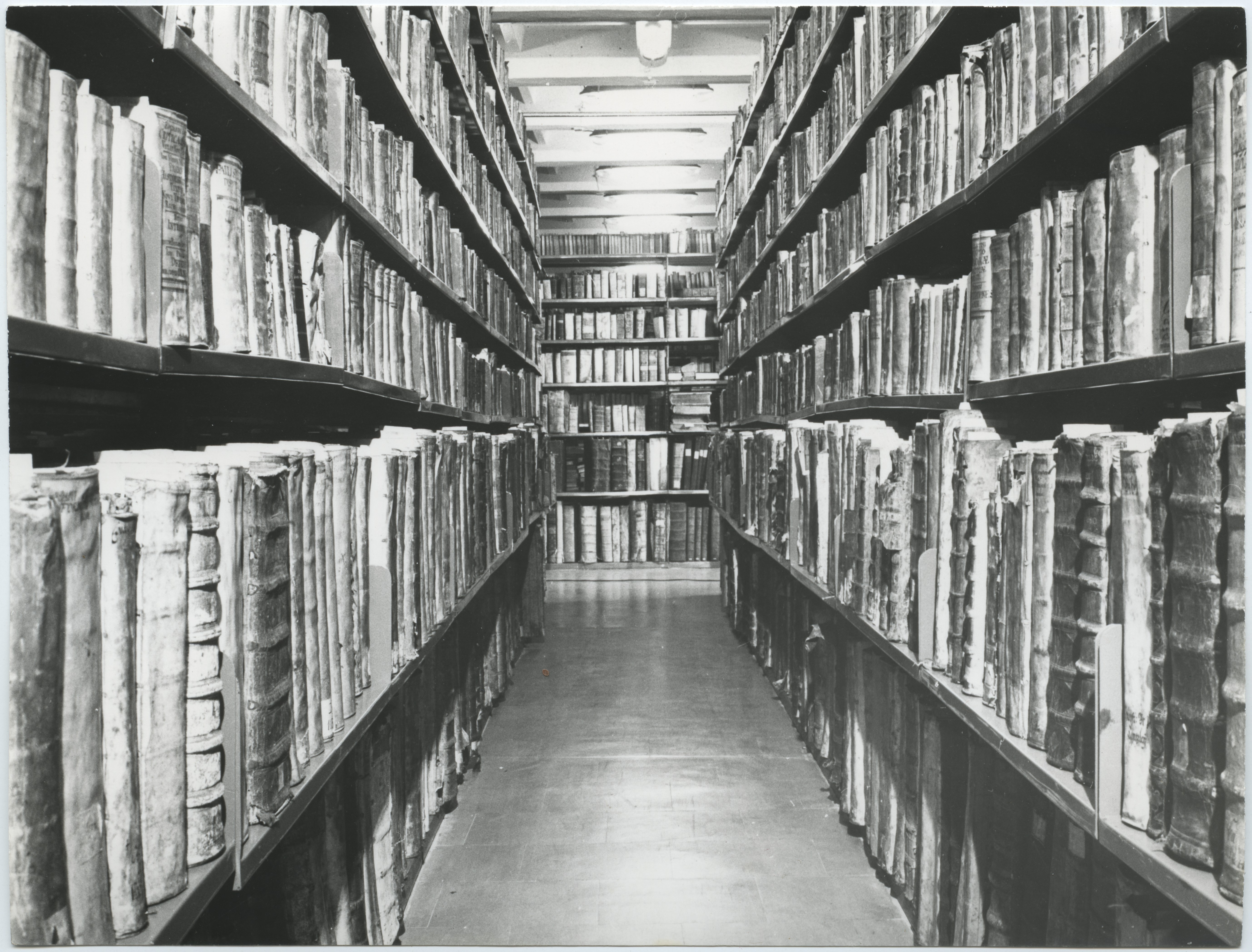 Magazyn starych druków BU UMK w gmachu przy ulicy Gagarina 13, 1978 r.