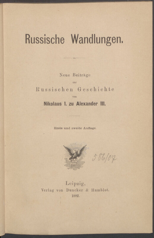 Part of Russische Wandlungen : neue Beiträge zur russischen Geschichte von Nikolaus I. zu Alexander III