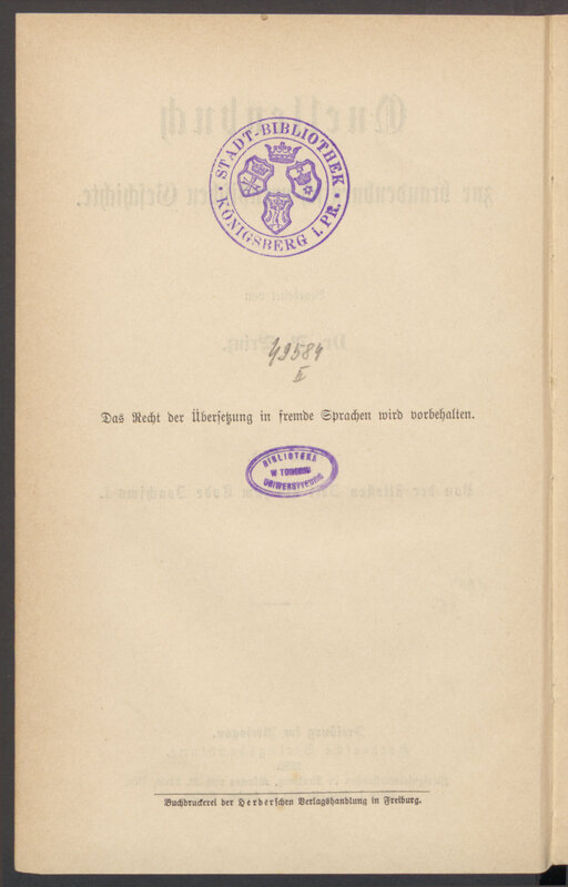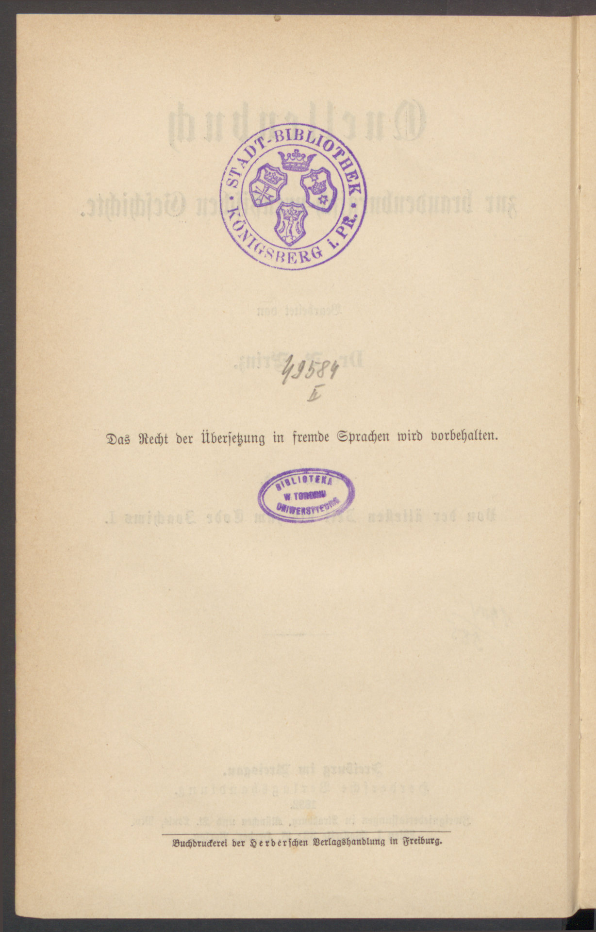 Quellenbuch zur brandenburgisch-preussischen Geschichte Bd. 1, Von der ältesen Zeit bis zum Tode Joachims I - strona z pieczątką
