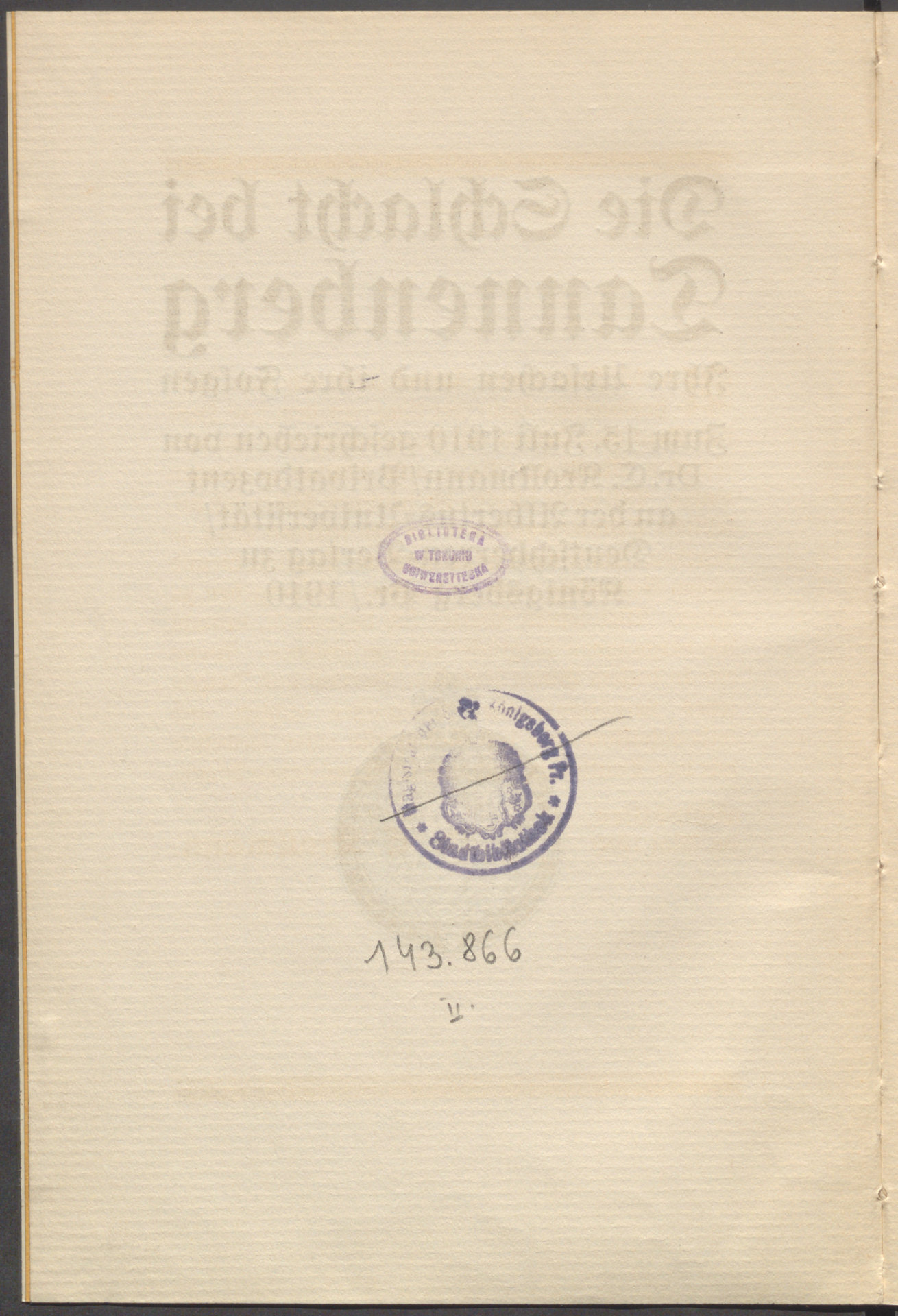 Die Schlacht bei Tannenberg : ihre Ursachen und ihre Folgen : zum 15. Juli 1910 geschrieben - strona z pieczątką