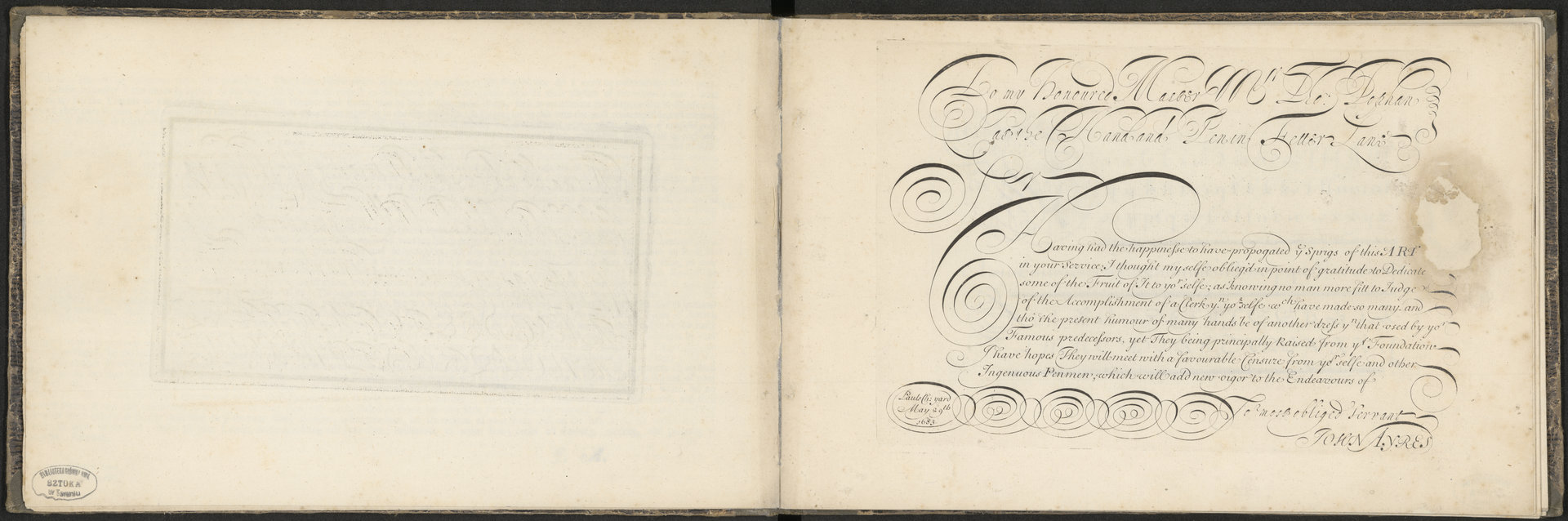 The accomplished clerk, or, Accurate penman a new copy book containing variety of usefull examples showing ye most natural and clerk like way of writing all the usual hands of England - [27] karta z tablicą litografii z różnymi czcionkami alfabetu