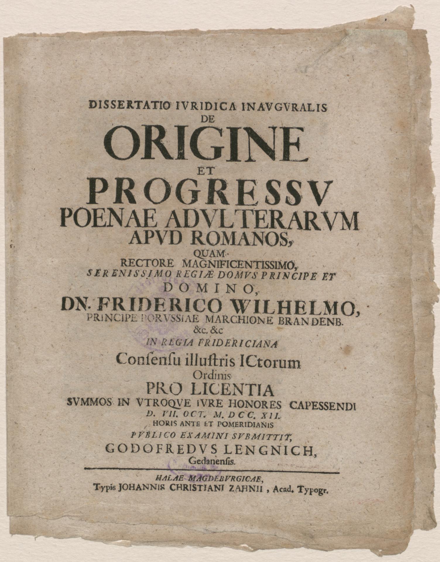 Part of Dissertatio Iuridica Inauguralis De Origine Et Progressu Poenae Adulterarum Apud Romanos
