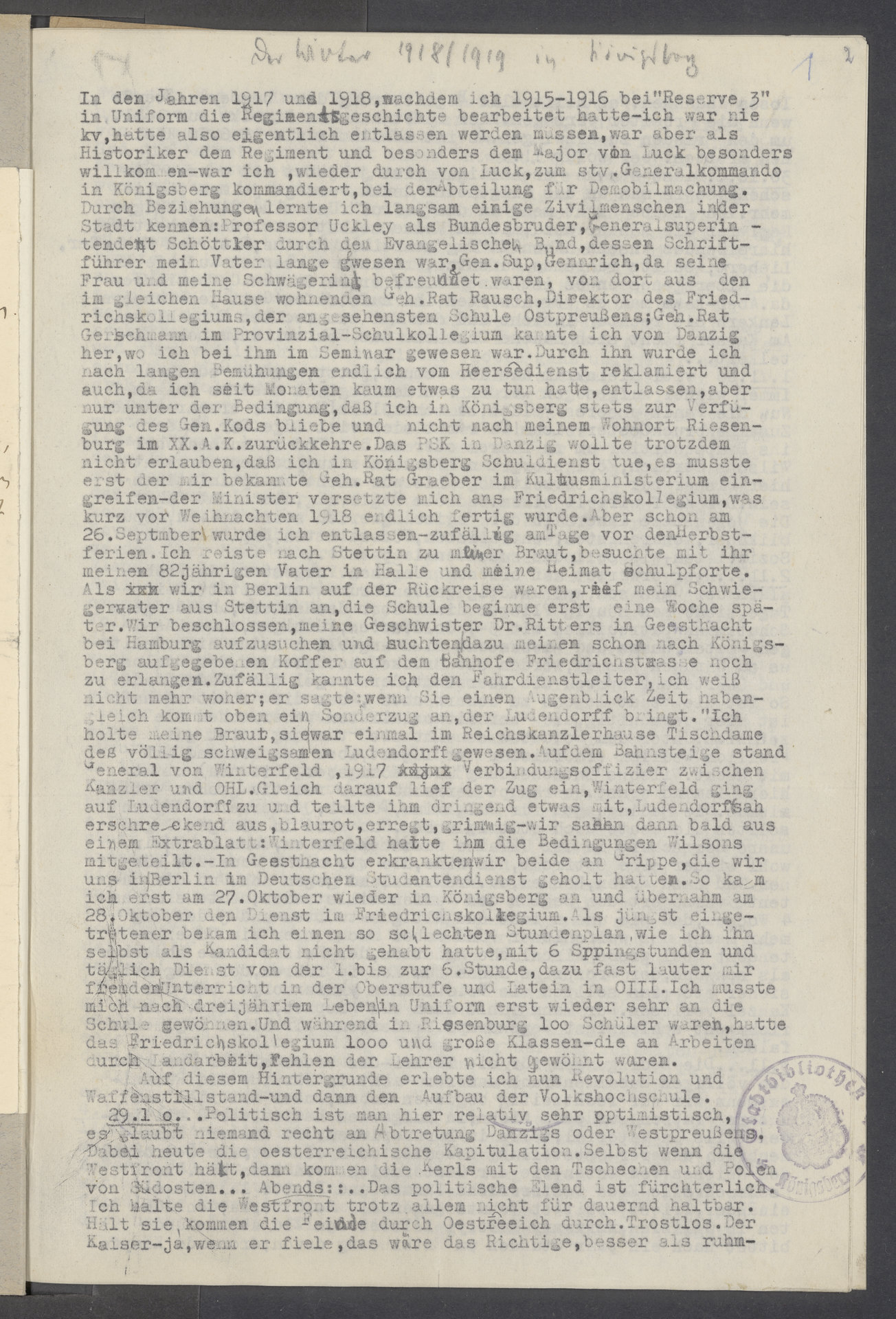 Part of Der Winter 1918/1919 in Königsberg insbes. die Entstehungsgeschichte der Volkshochschule von Hermann Witte