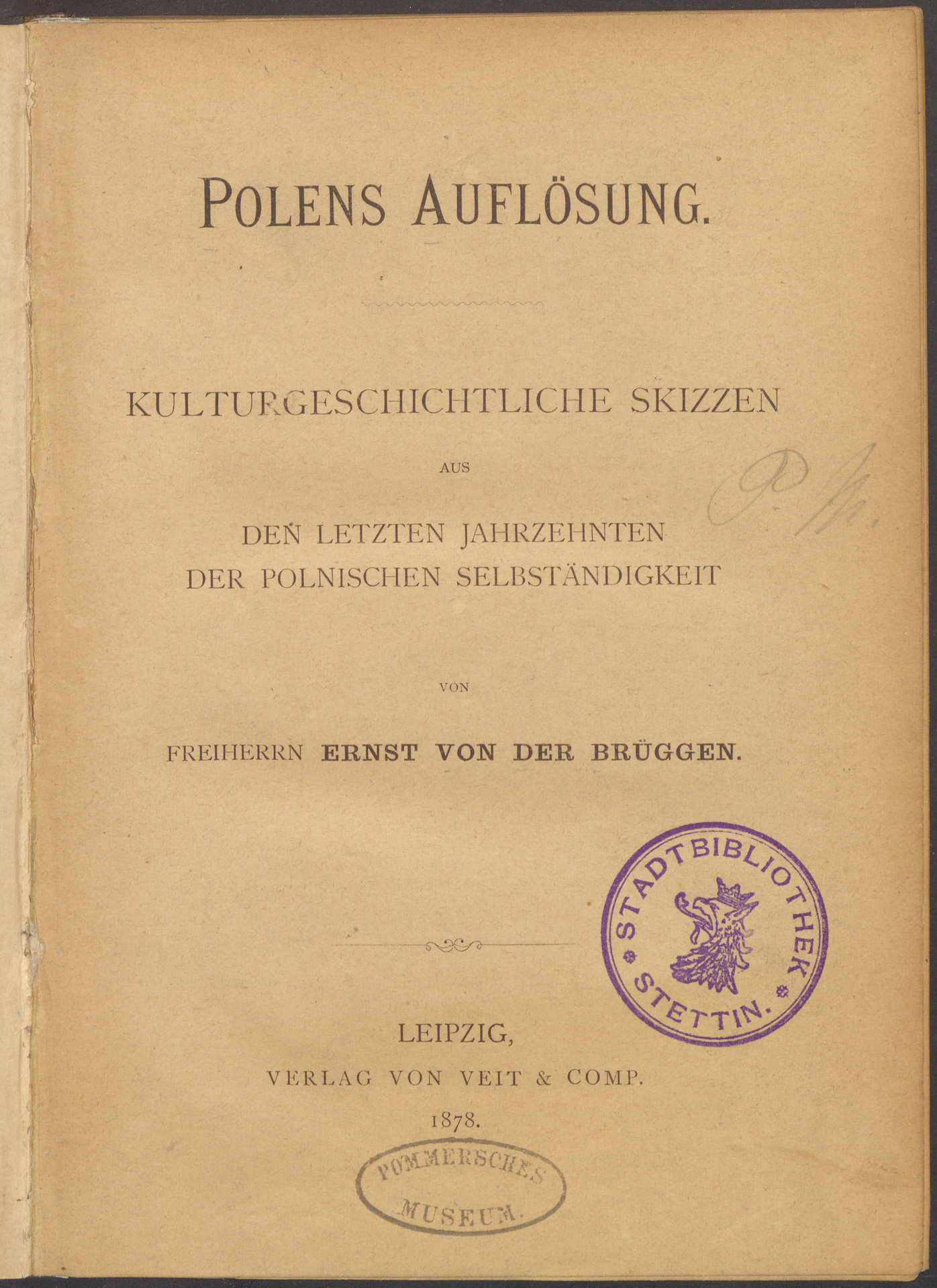 Polens Auflösung : kulturgeschichtliche Skizzen aus den Letzten Jahrzehnten der polnischen Selbständigkeit - strona tytułowa z pieczątkami