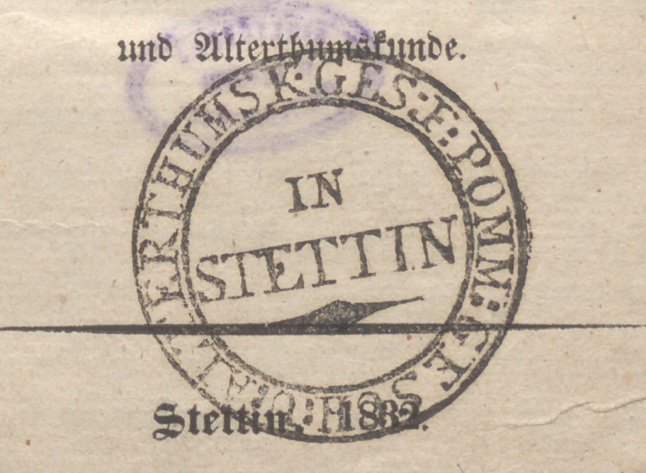 Die Belagerungen Stettins seit dem Anfange des zwölften Jahrhunderts - pieczątka okrągła: Ges. f: Pomm: Gesch: u: Alterthumsk. in STETTIN