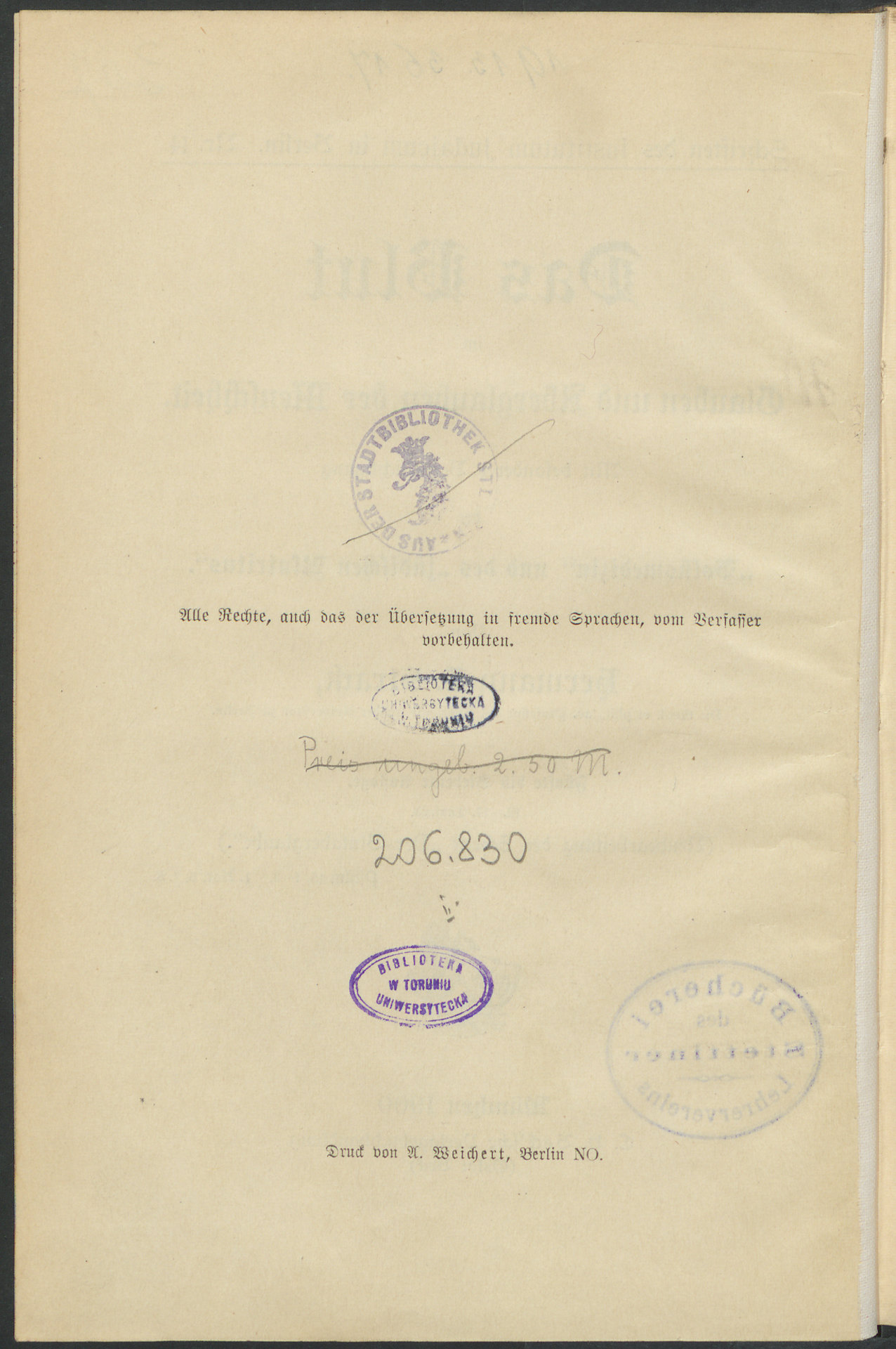 Das Blut im Glauben und Aberglauben der Menschheit : mit besonderer Berücksichtigung der "Volksmedizin" und des "jüdischen Blutritus" - strona z pieczątkami