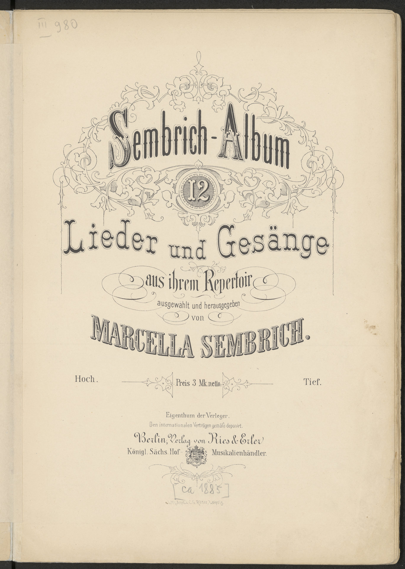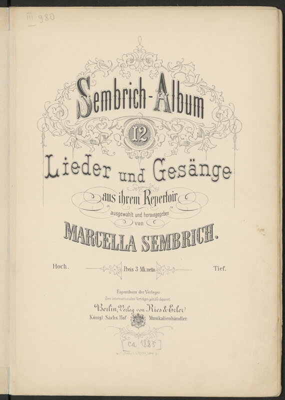 Part of Sembrich-Album. 12 Lieder und Gesänge aus ihrem Repertoir