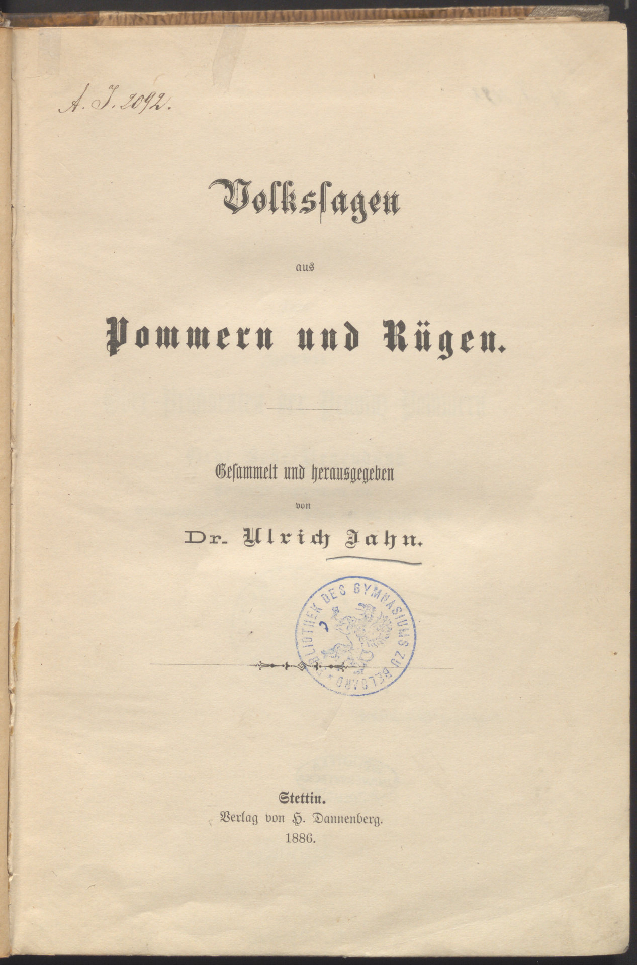 Volkssagen aus Pommern und Rügen - strona tytułowa