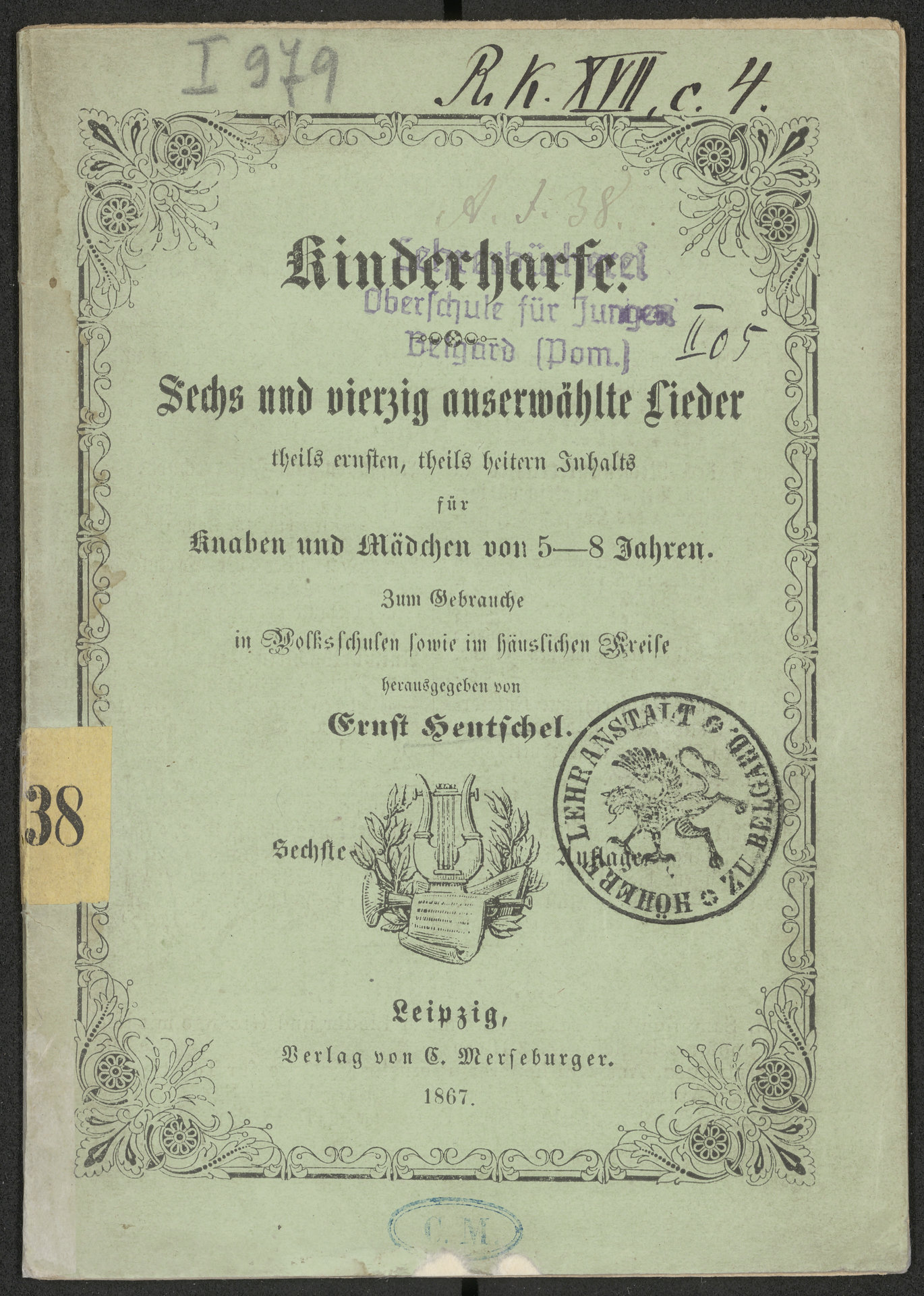 Kinderharfe. Sechs und vierzig auserwählte Lieder...für Knaben und Mädchen von 5-8 Jahren - okładzina przednia z pieczątką