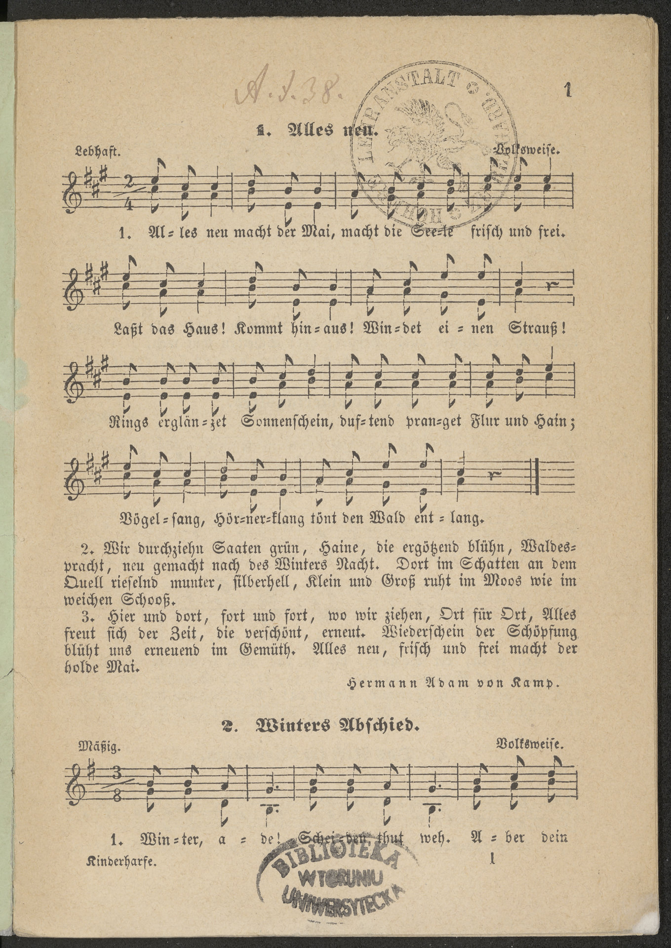Part of Kinderharfe. Sechs und vierzig auserwählte Lieder...für Knaben und Mädchen von 5-8 Jahren