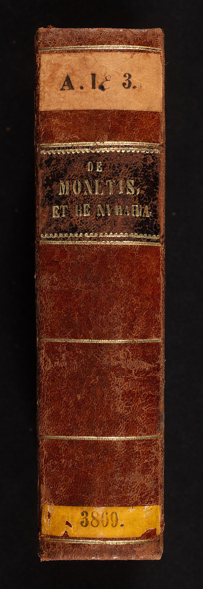 De Monetis Et Re Nvmaria Libri Dvo - nalepka (żółta) na grzbiecie z sygnaturą