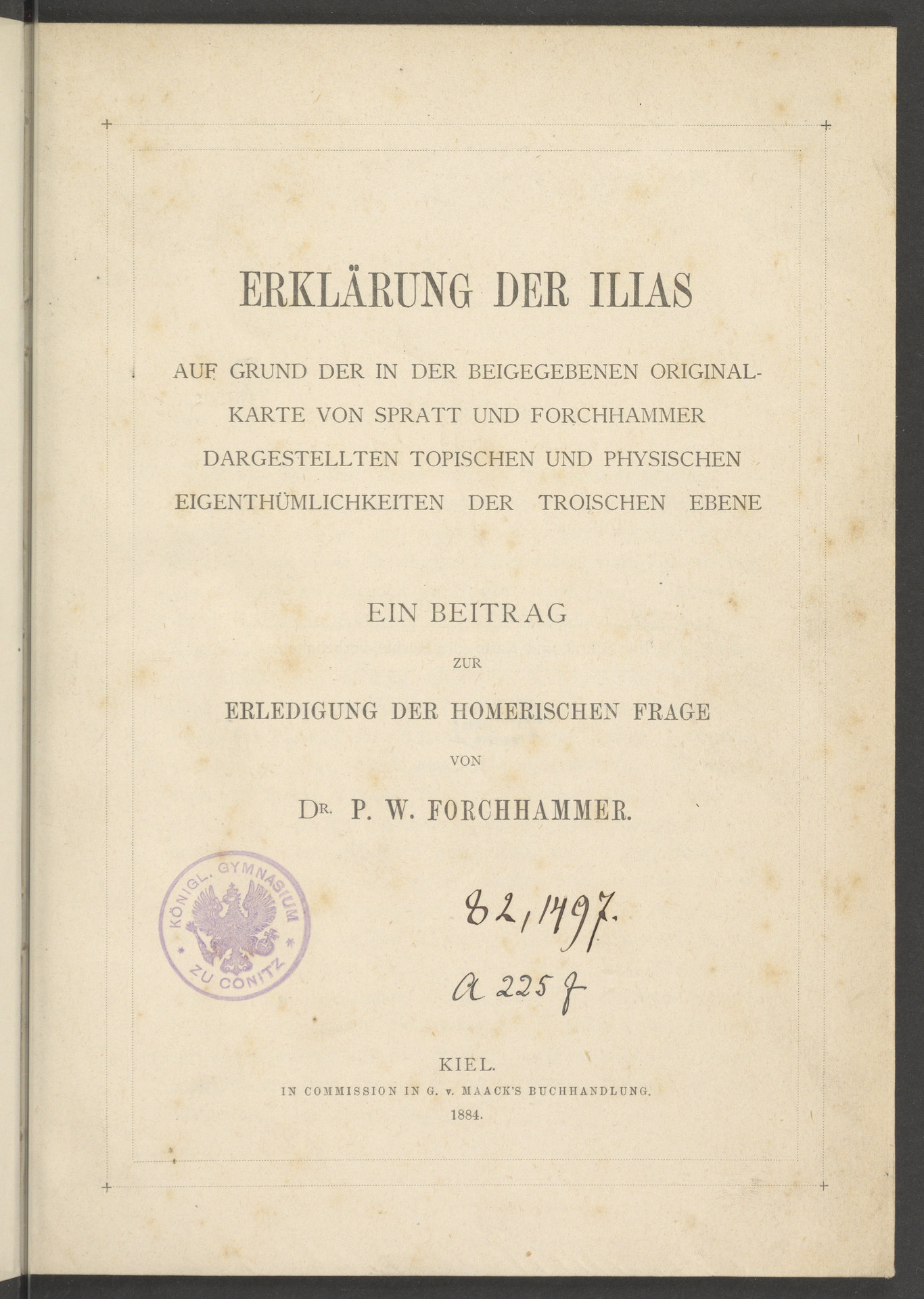 Erklärung der Ilias : auf grund der in der beigegebenen Originalkarte von Spratt und Forchhammer dargestellten topischen und physischen Eigenthümlichkeiten der Troischen Edene - strona tytułowa