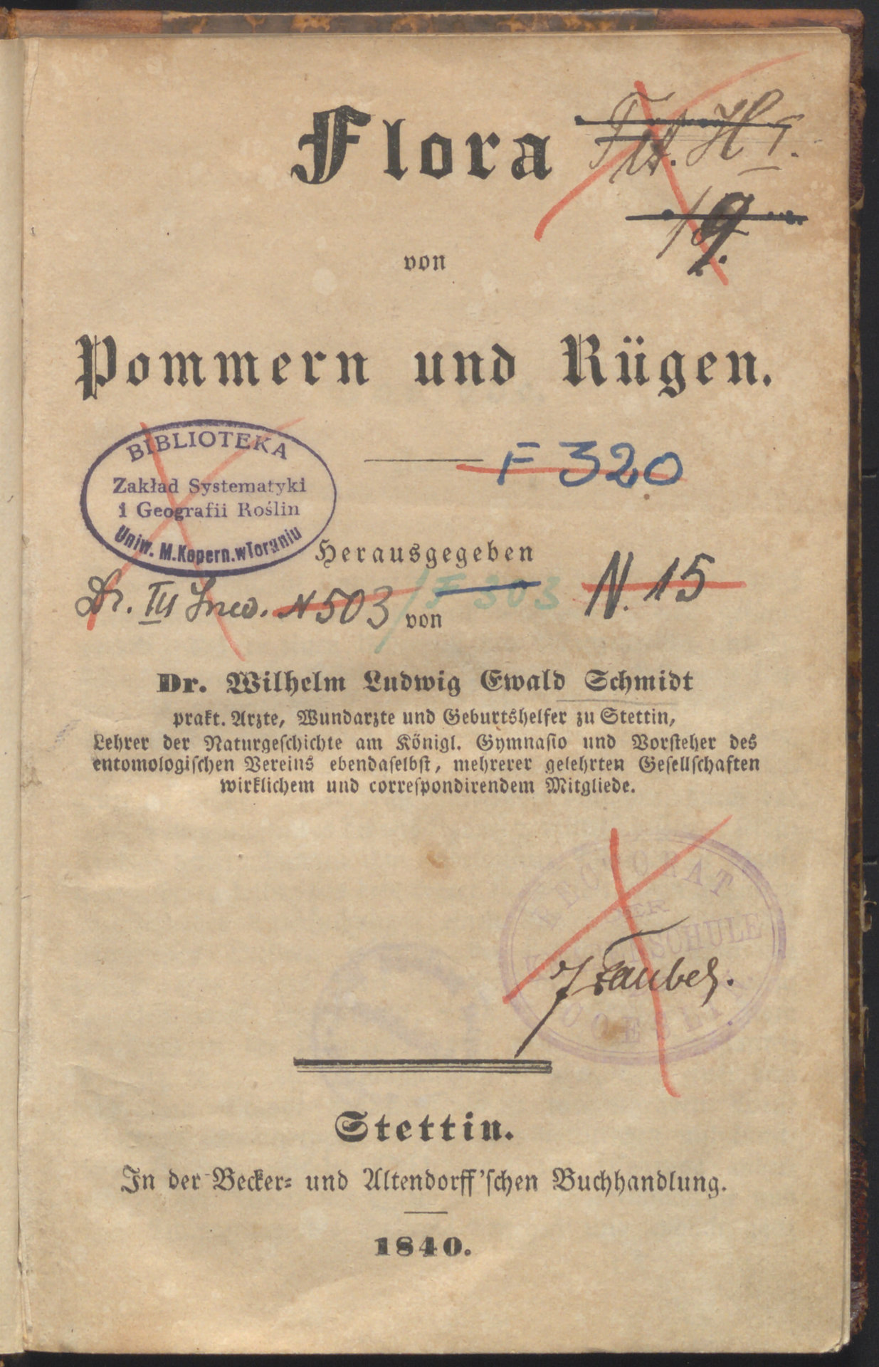 Flora von Pommern und Rügen - strona tytułowa