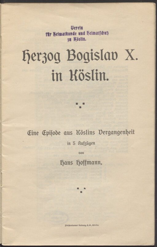 Herzog Bogislav X. in Köslin : eine Episode aus Köslins Vergangenheit in 5 Aufzügen - strona tytułowa