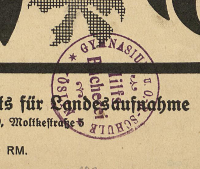 Elbing-Wormditt-Mohrungen ; Reichskarte Einheitsblatt 28 (Elbing-Wormditt-Mohrungen) 1:100 000 - pieczątka: GYMNASIUM U. O. -R. - SCHULE KÖSLIN Hilfs-Bücherei
