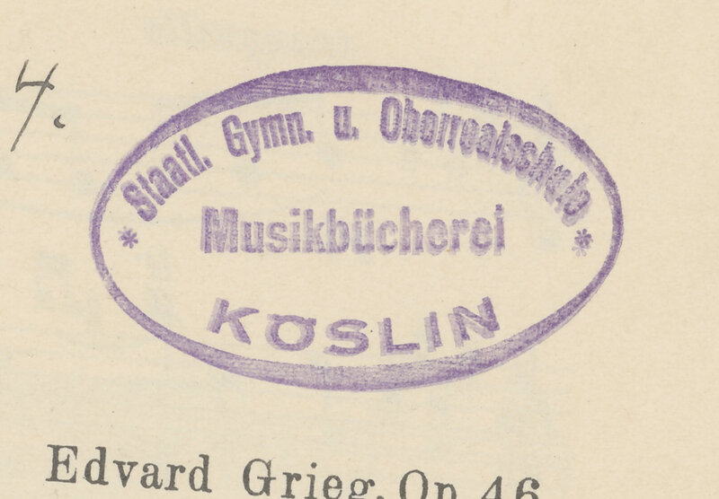 Erste Peer Gynt-Suite : für Klavier, Violine und Violoncello op. 46 - owalna pieczęć fioletowa: Staatl. Gymn. u. Oberrealschule Musikbücherei Köslin