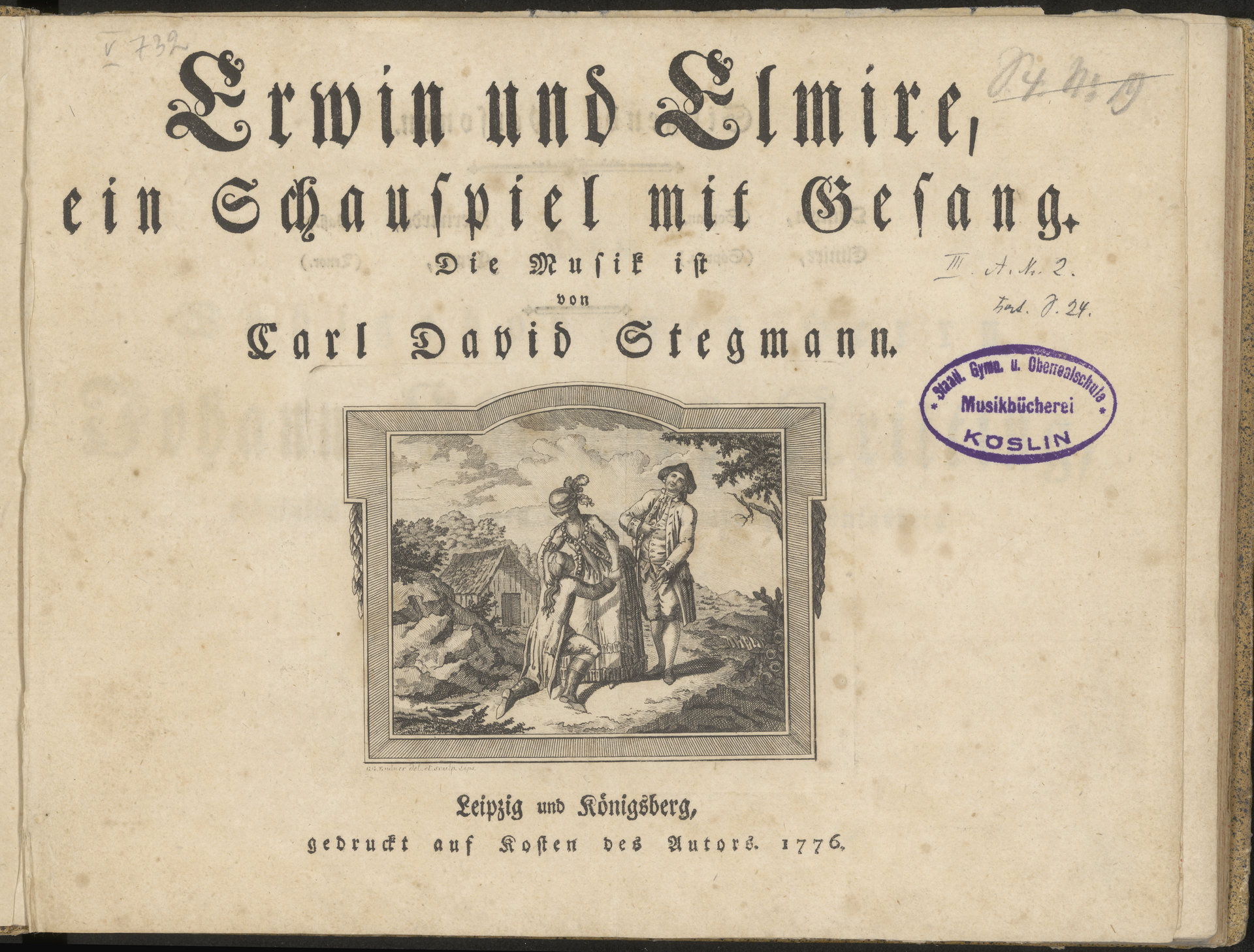 Erwin und Elmire, ein Schauspiel mit Gesang - strona tytułowa z pieczątką
