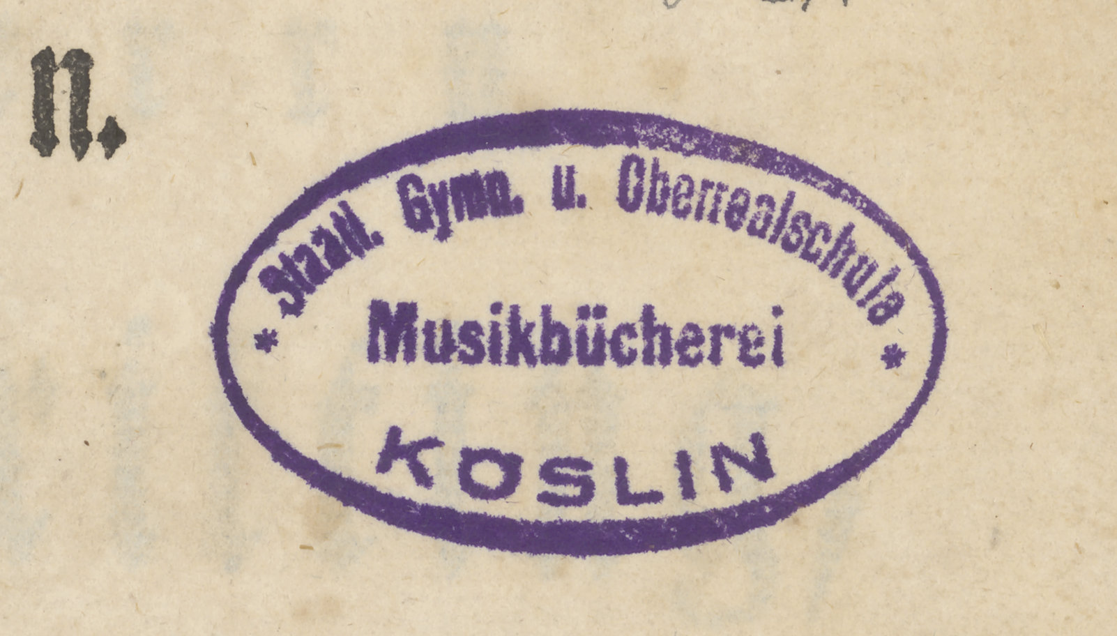 Erwin und Elmire, ein Schauspiel mit Gesang - pieczątka owalna fioletowa; Staatl. Gymn. u. Oberrealschule Musikbücherei Köslin