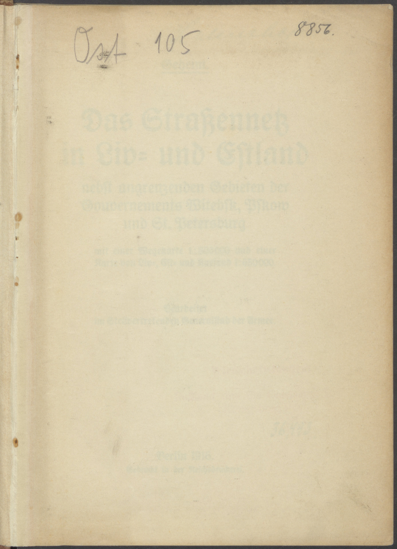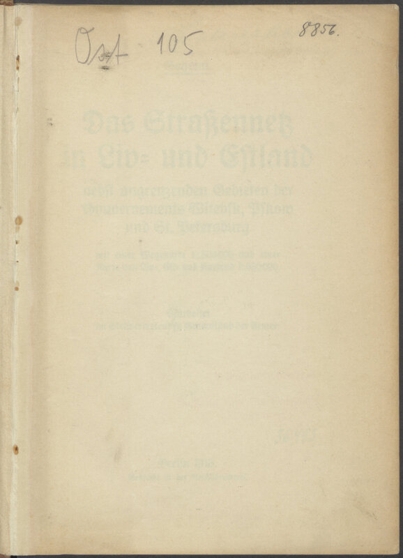 Das Straßennetz in Liv= und Estland nebst angrenzenden Gebieten der gouvernements Witebsk, Pskow und St. Petersburg - strona z odręcznymi wpisami