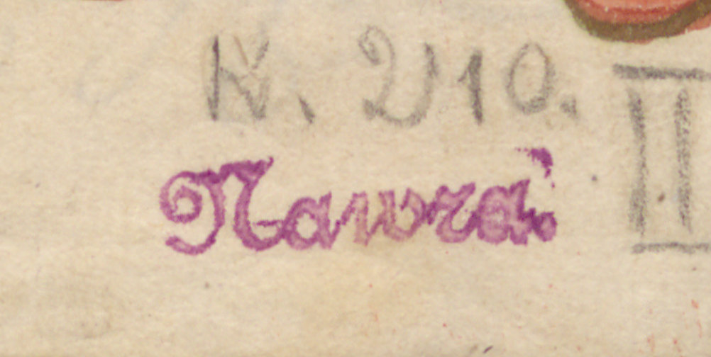 Historia książęcia Ariamena królewicza perskiego - pieczątka "Nawra" oraz numer akcesji wiążący rękopis z depozytem Sczanieckich