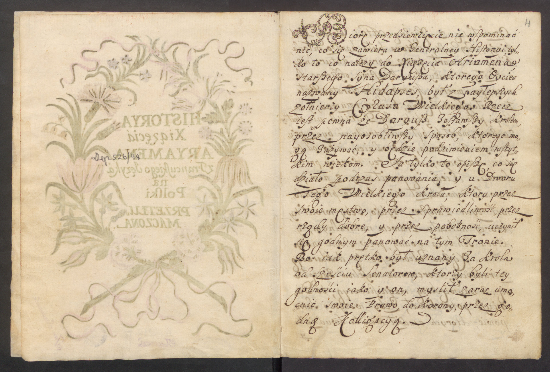 Historia książęcia Ariamena królewicza perskiego - strona rękopisu