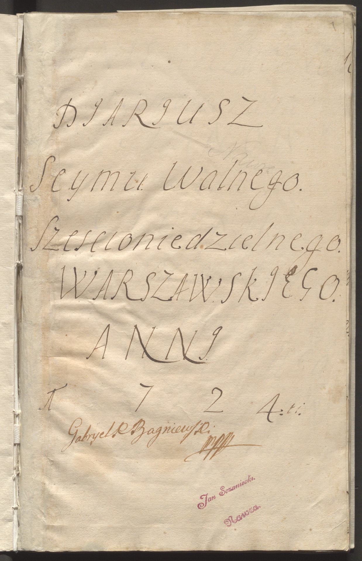 Diariusz sejmu z 1724 r. - strona tytułowa