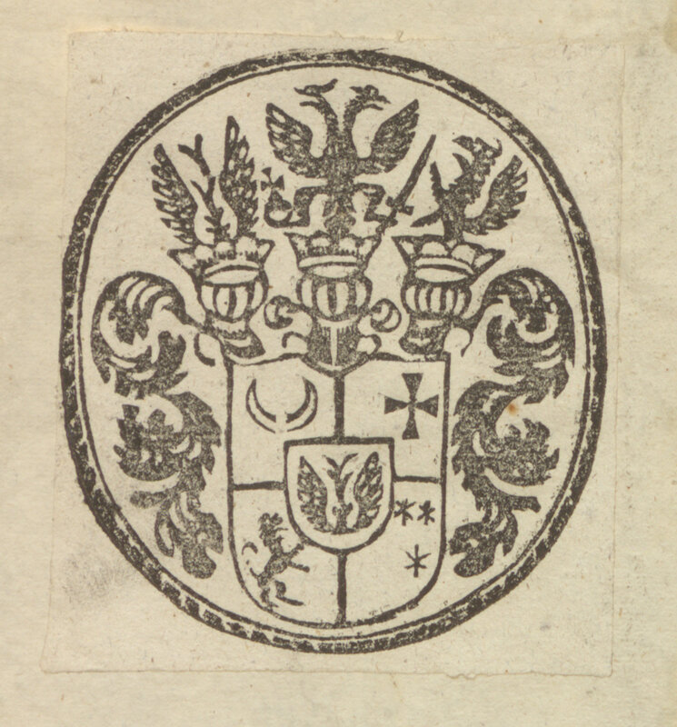 Biblische Spruch Fragen - ekslibris Lehndorffów na wyklejce górnej okładziny