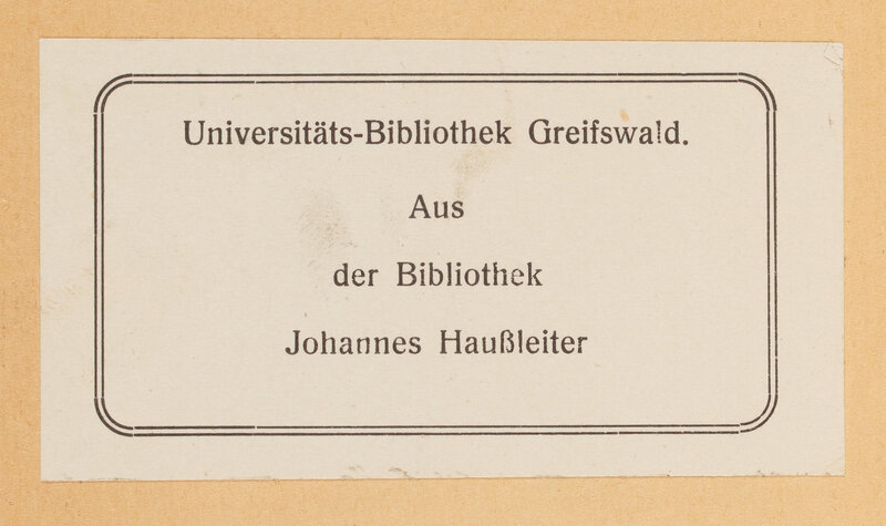 Kercken Ordeninge im Lande tho Pamern : Dorch [...] Herrn Barnim, vnde Herrn Philipsen, Hochlöffliker gedechtnis, beide Hertogen tho Stettin [...], Anuenglick vp dem Landdage tho Treptow Anno M. D. XXXV geslaten [...]. - ekslibris donacyjny: "Universitäts-Bibliothek Greifswald. Aus der Bibliothek Johannes Haußleiter"