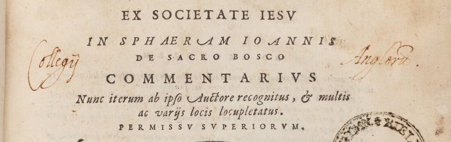 Part of Christophori Clavii Bambergensis Ex Societate Iesv In Sphaeram Ioannis De Sacro Bosco Commentarivs nunc iterum ab ipso auctore recognitus, & multis ac varijs locis locupletatus.