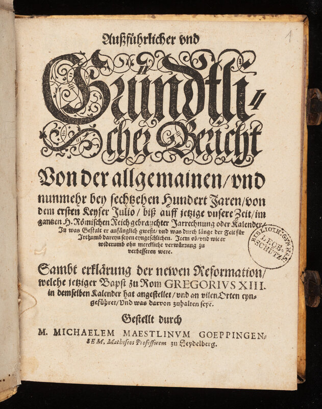 Außführlicher vnd Gründtlicher Bericht Von der allgemainen, vnd nunmehr bey sechtzehen Hundert Jaren, von dem ersten Keyser Julio [...] gebrauchter Jarrechnung [...] - strona tytułowa