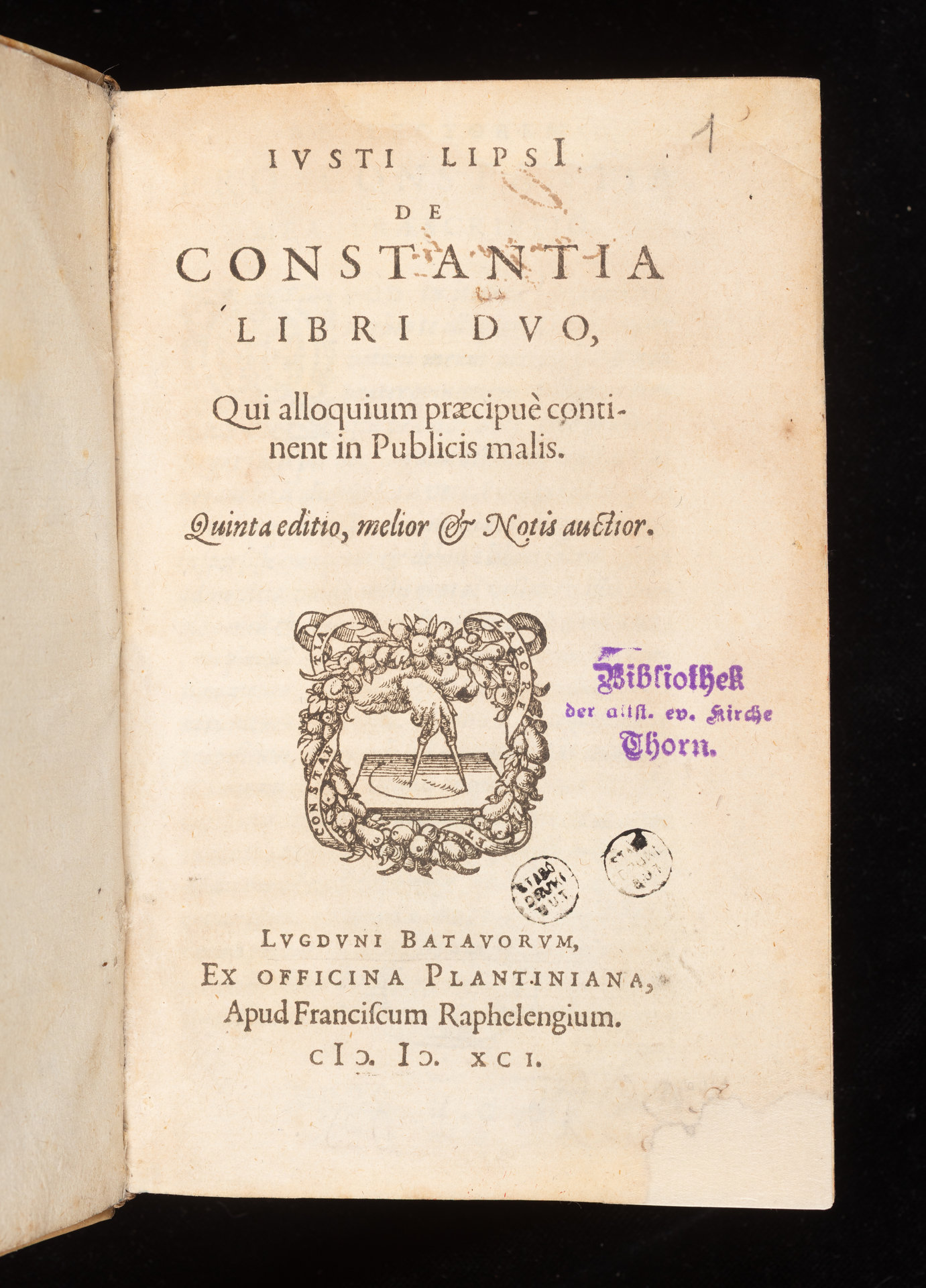 De Constantia Libri Duo, Qui alloquium praecipue continent in Publicis malis - karta tytułowa