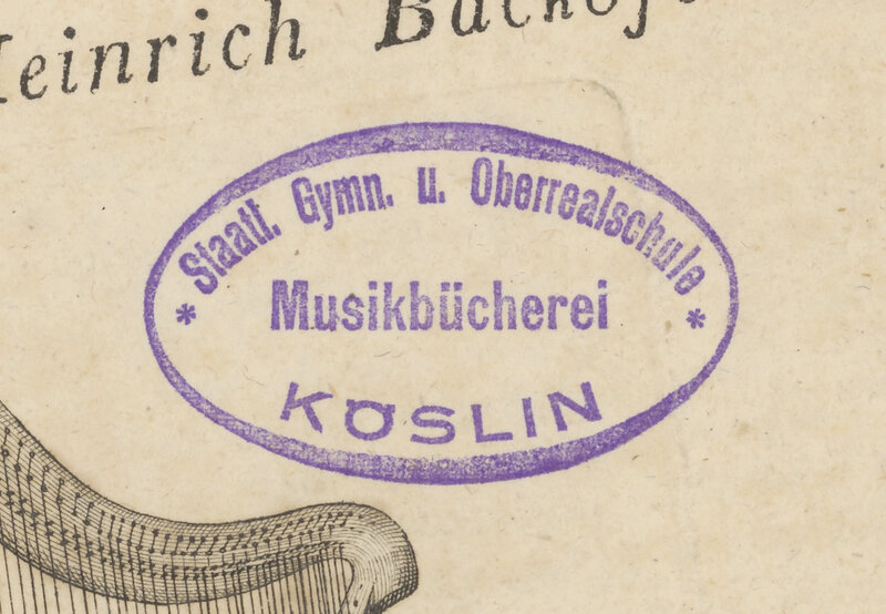 11. Owalna pieczątka: Staatl. Gymn. u. Oberrealschule Musikbücherei Köslin (fioletowa)