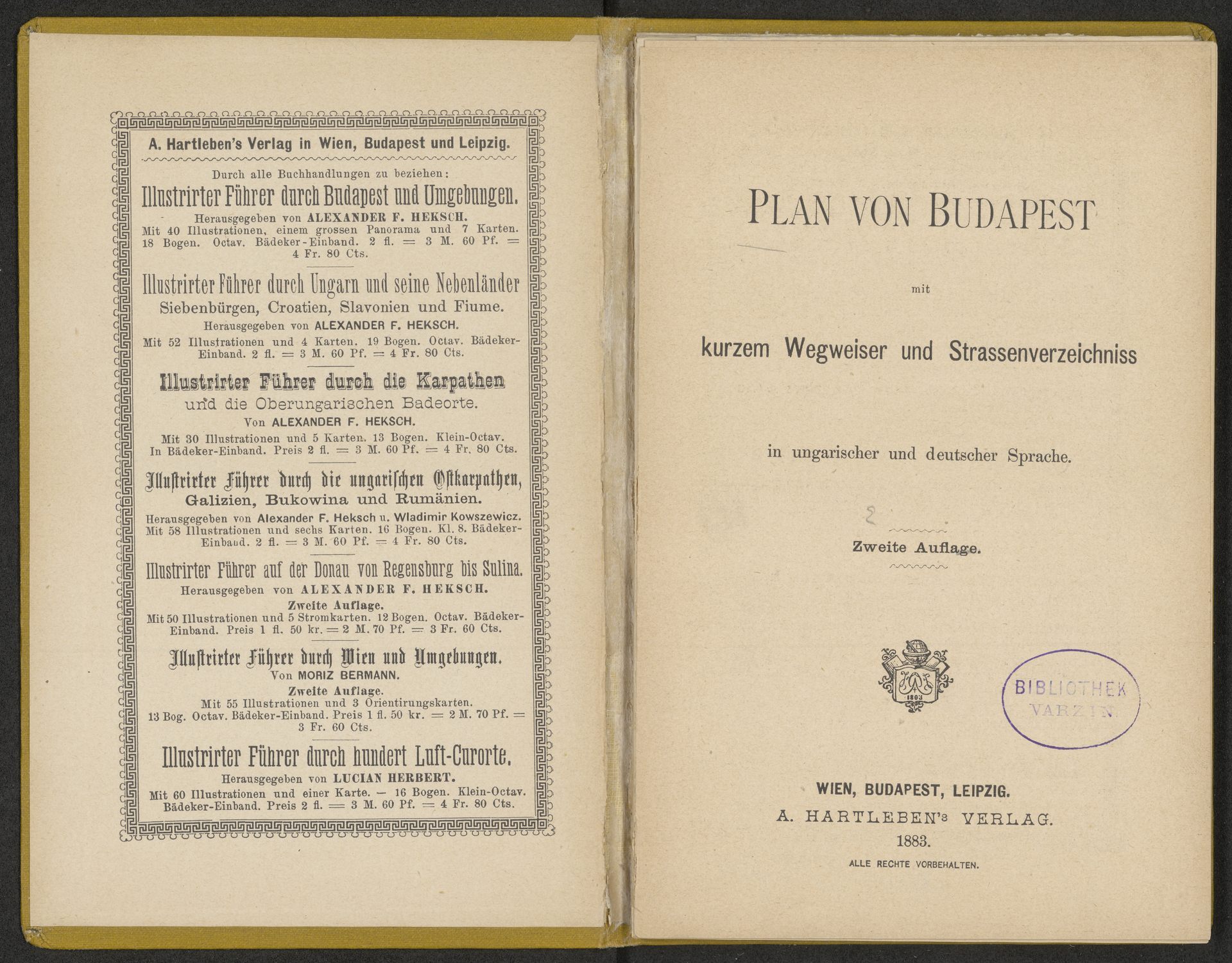 Plan von Budapest mit kurzem Wegweiser und Strassenverzeichniss in ungarischer und deutscher Sprache. Zweite Auflage - strona tytułowa z pieczątką