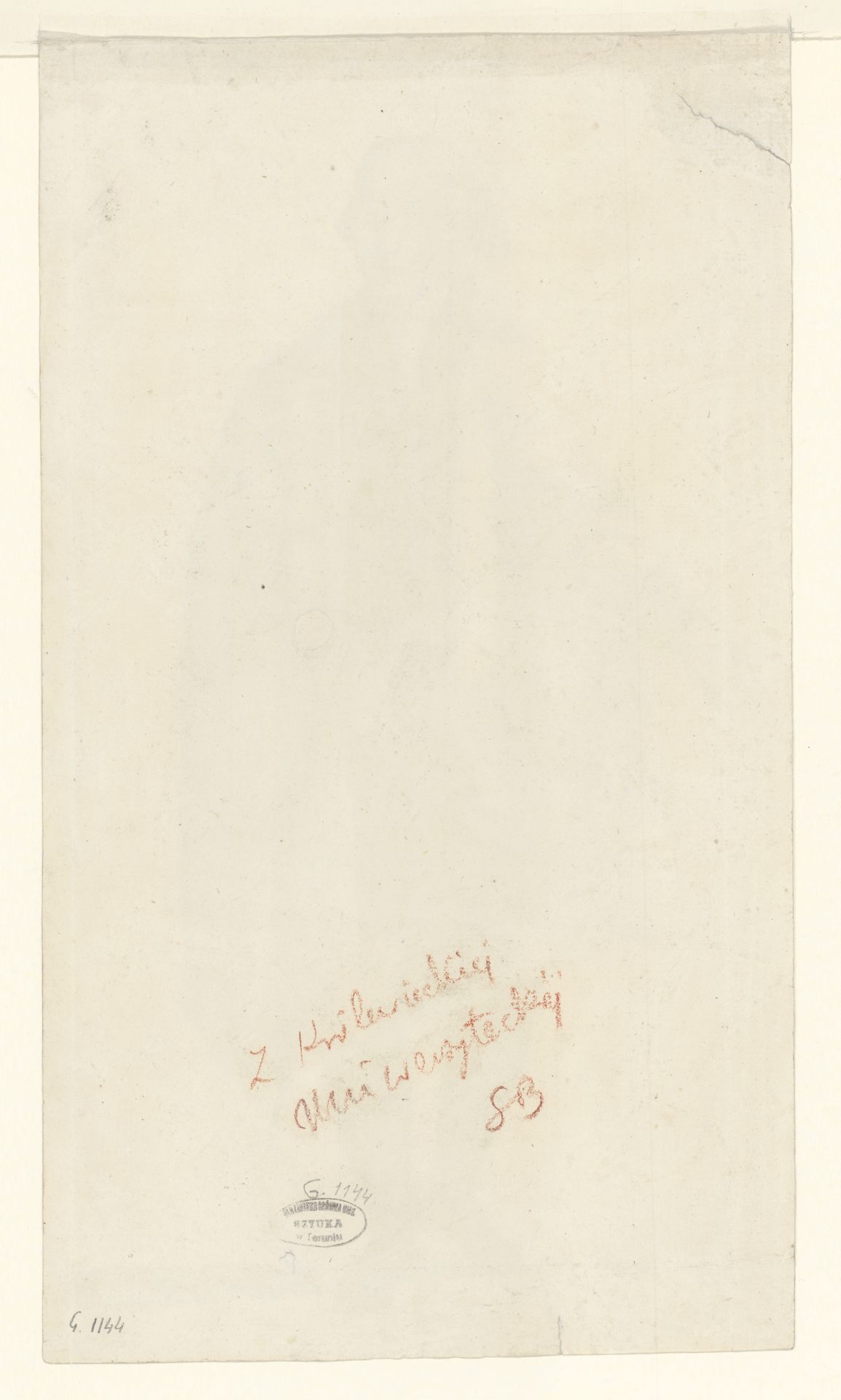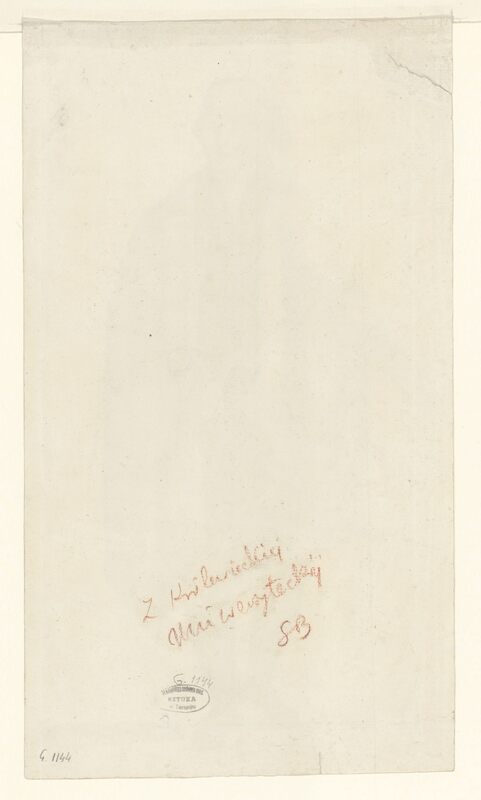 Mężczyzna w stroju Zakonu Krzyżackiego - odręczna zapiska proweniencyjna czerwoną kredką: "Z Królewieckiej Uniwersyteckiej"