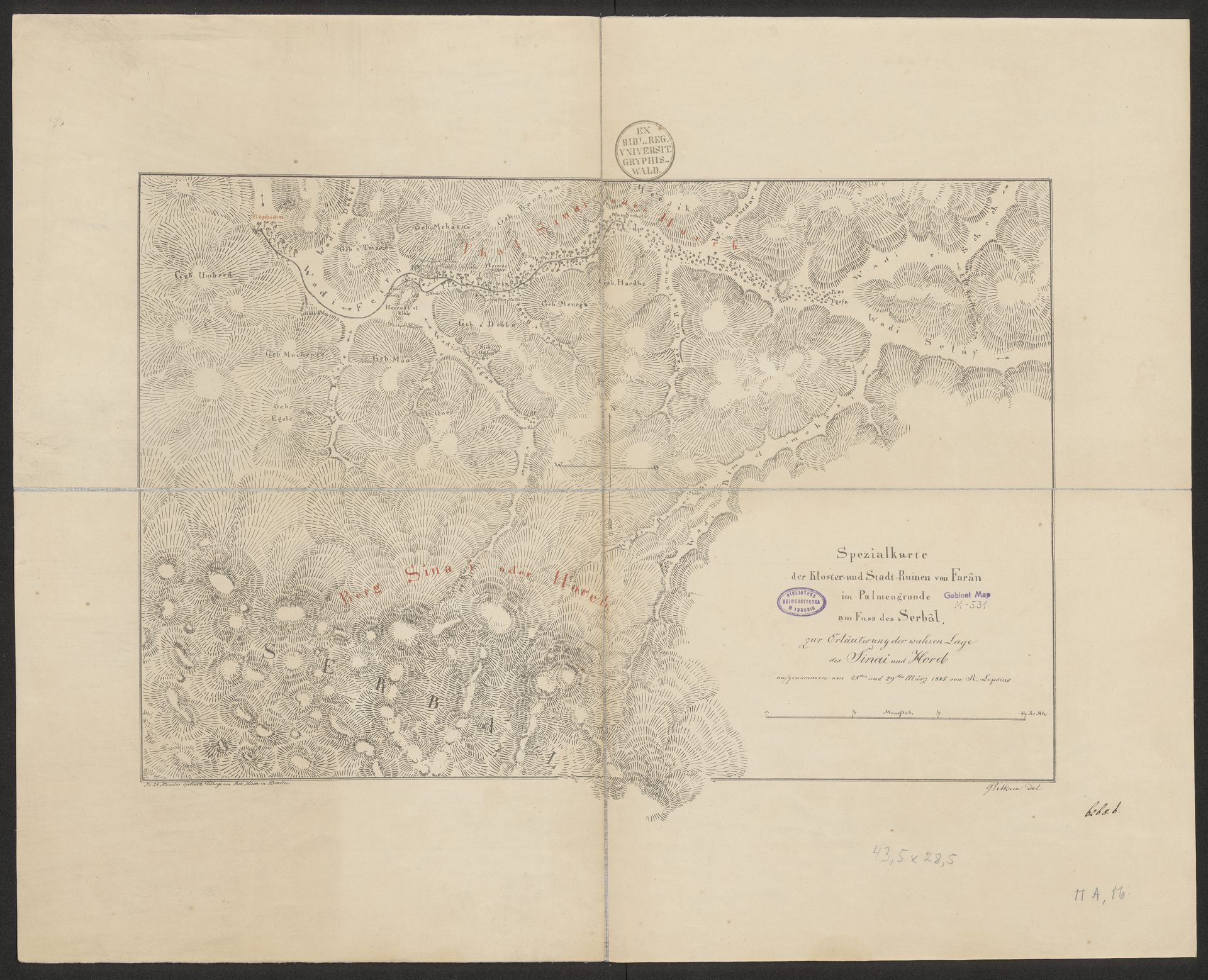 Spezialkarte der Kloster-und Stadt-Ruinen von Farân im Palmengrunde am Fuss des Serbâl - mapa