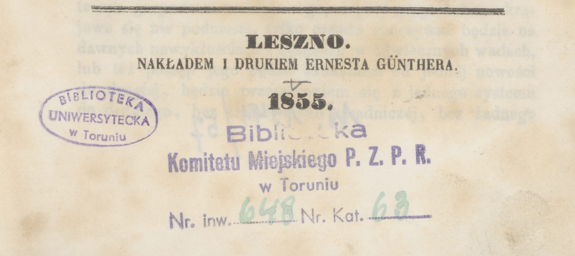 Ziemianin : pismo poświęcone rolnictwu i przemysłowi. R. 1855 - pieczątka: Biblioteka Komitetu Miejskiego PZPR w Toruniu
