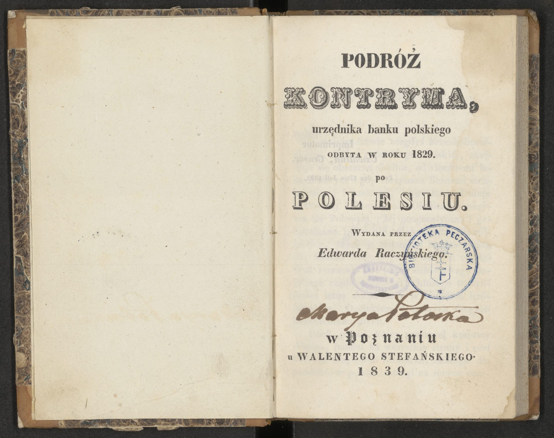 Podróż Kontryma, urzędnika banku polskiego odbyta w roku 1829 po Polesiu - strona przedtytułowa i tytułowa