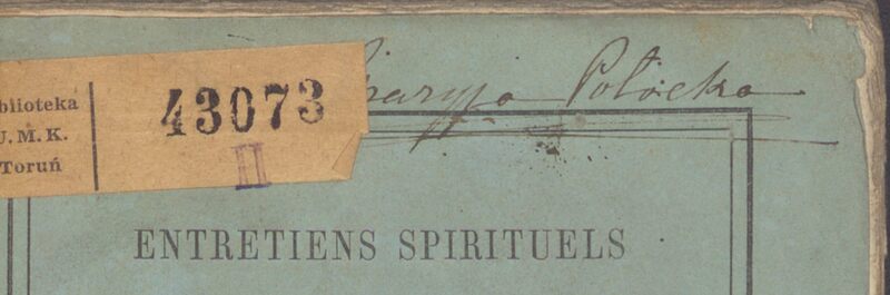 Entretiens spirituels du révérend père de Ravignan - zapiska własnościowa: Maryja Potocka