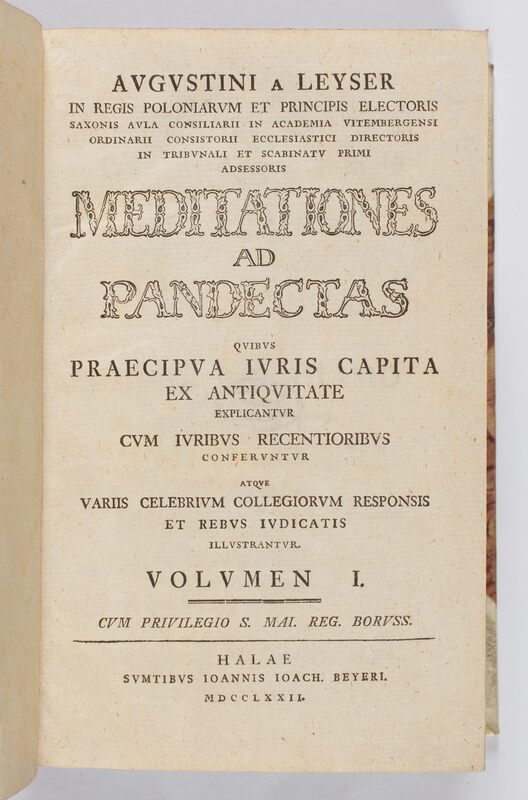 Part of Meditationes Ad Pandectas Quibus Praecipua Iuris Capita Ex Antiquitate explicantur Cum Iuribus Recentioribus Conferuntur Atque Variis Celebrium Collegiorum Responsis Et Rebus Iudicatis
