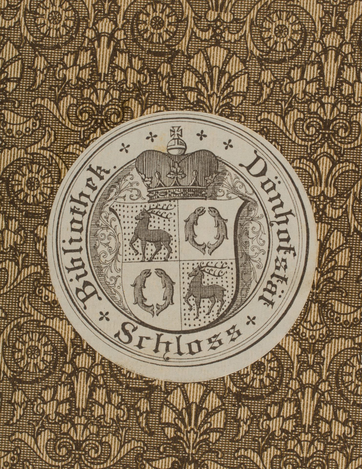 De l'insurrection parisienne et de la prise de la Bastille - ekslibris okrągły z herbem rodu Stolberg-Wernigerode i napisem Bibliothek Schloss Dönhofstät