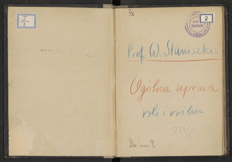 Ogólna uprawa roli i roślin - strona z nalepką sygnaturową i pieczątką