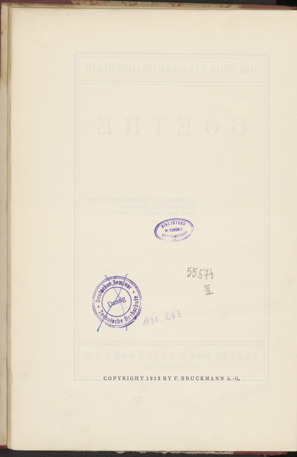 Goethe - pieczątka okrągła: Deutsches Seminar Technische Hochschule Danzig. Grzebiet z sygnaturą