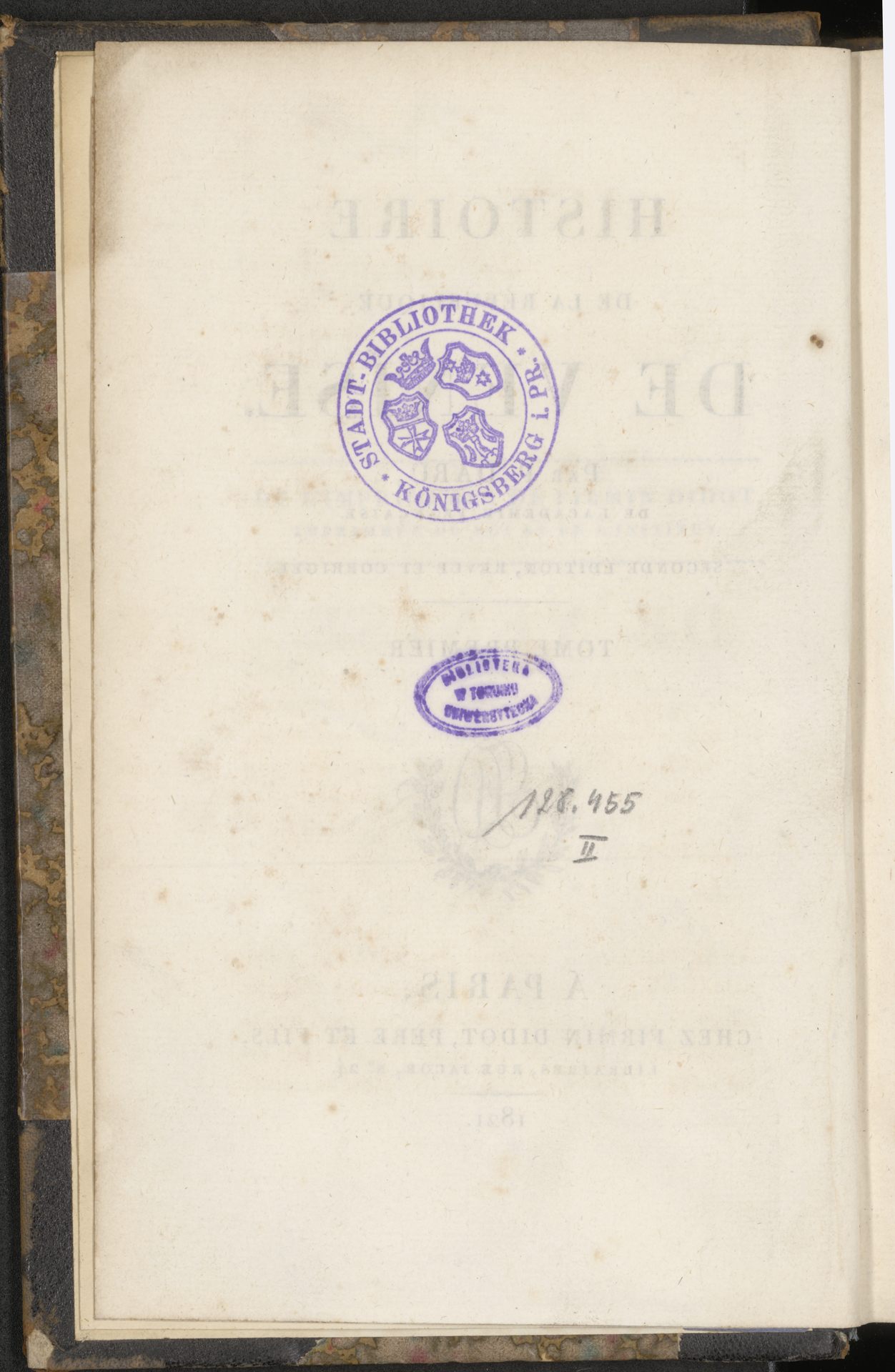 Histoire de la République de Venise. T. 1-8. - strona z pieczątką