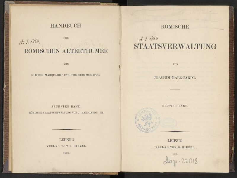 Part of Römische Staatsverwaltung. Bd. 3.