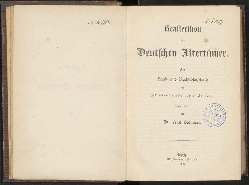 Reallexikon der deutschen Altertümer - strona tytułowa