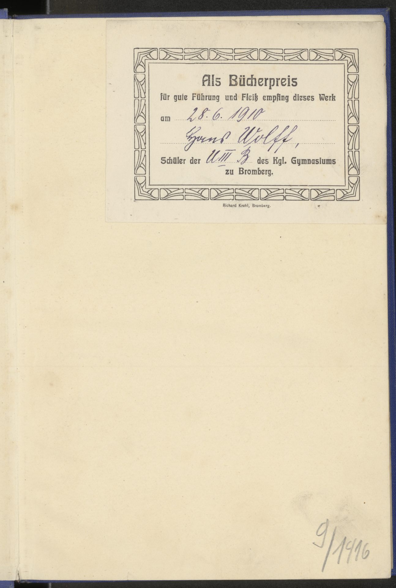 Königin Luise - nalepka prostokątna: "Aus Bücherpreis" informująca o przyznaniu nagrody książkowej uczniowi gimnazjum