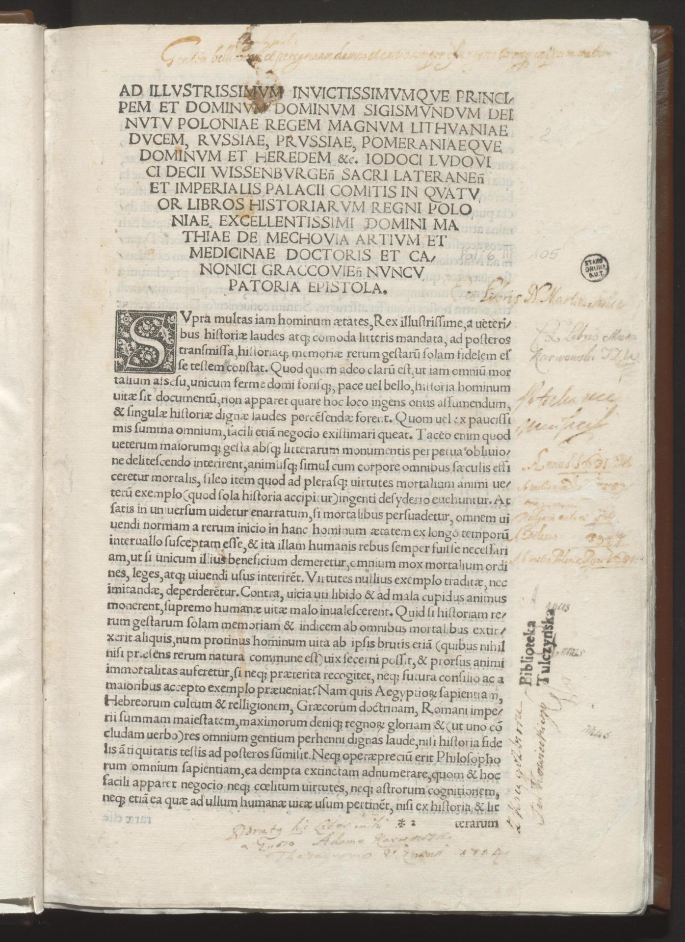 Chronica Polonorum - strona ze znakami proweniencyjnymi