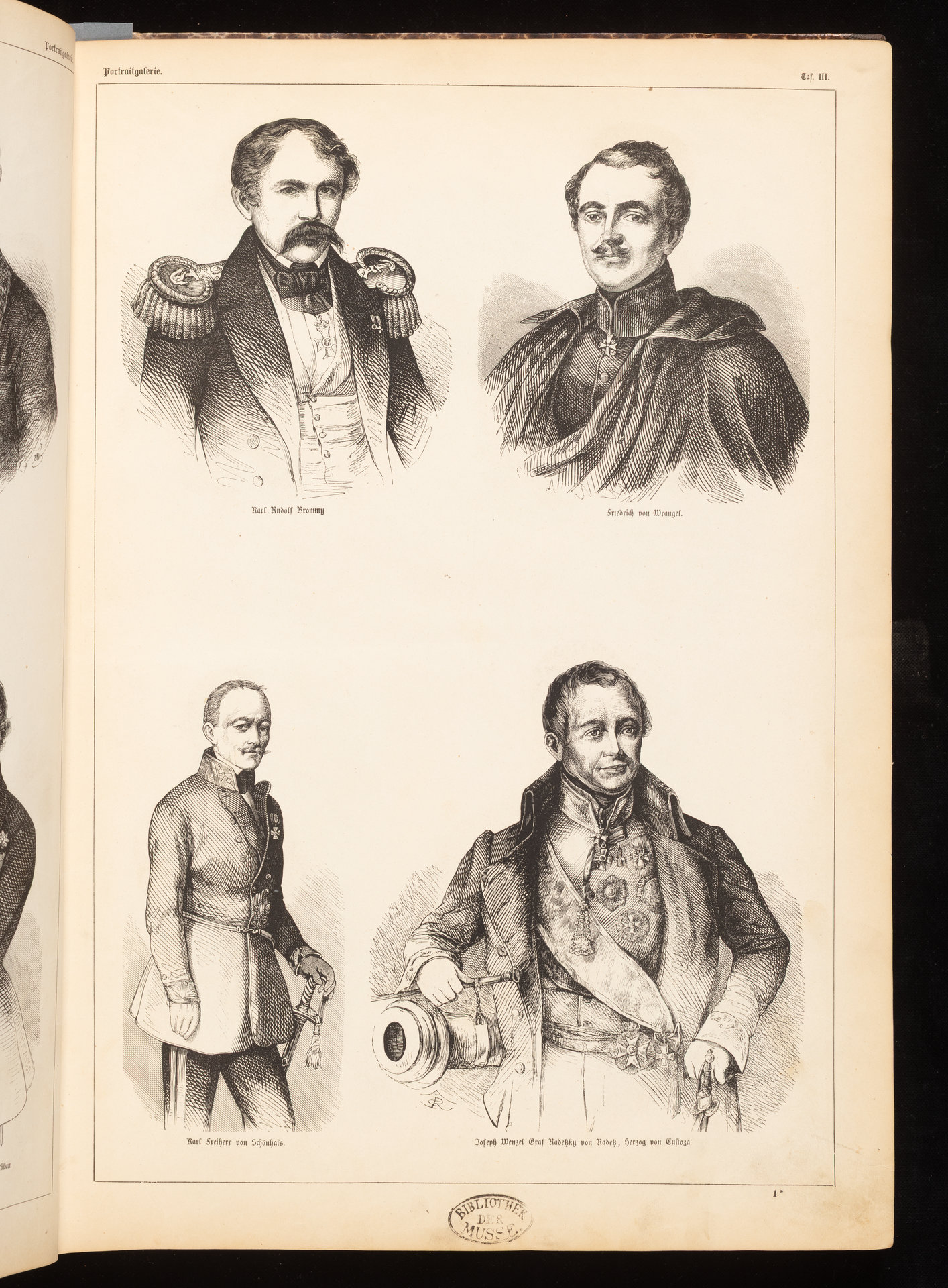 Galerie denkwürdiger Persönlichkeiten der Gegenwart. Nach Originalzeichnungen, Gemälden, Statuen und Medaillen - pieczątka owalna: Bibliothek Der Musse