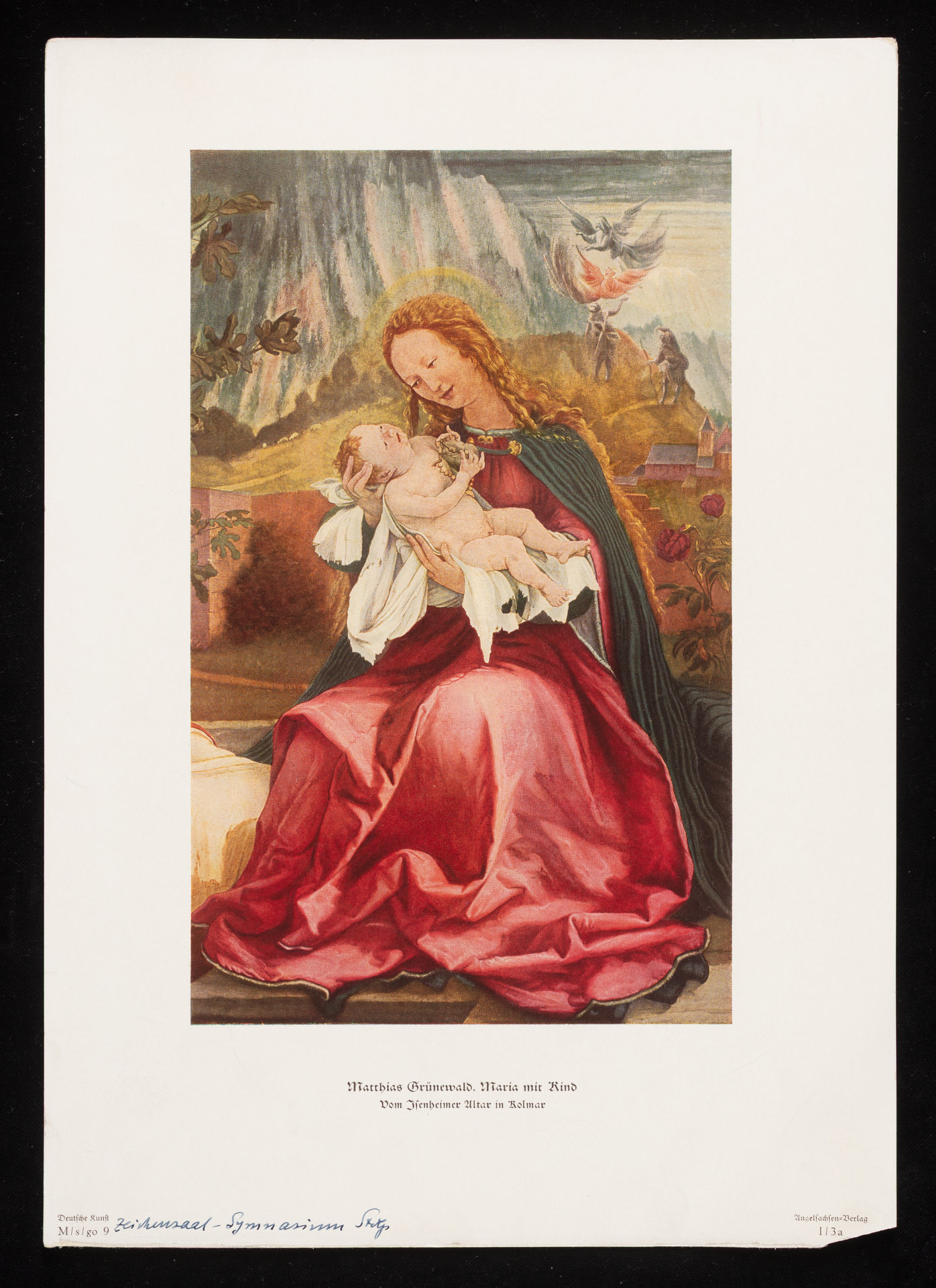 Der Isenheimer Altar des in Kolmar. 12 einfarbige und 1 mehrfarbige Tafel mit erläuterndem Text von Richard H. L.Hamann - tuszem niebieskim na każdej tablicy: Zeichensaal- Gymnasium Stolp
